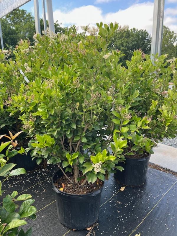 The Wavy Leaf Privet is a big grower, typically reaching 8–10 feet tall and 5–6 feet wide, though it can be kept smaller with pruning. It loves full sun to partial shade.