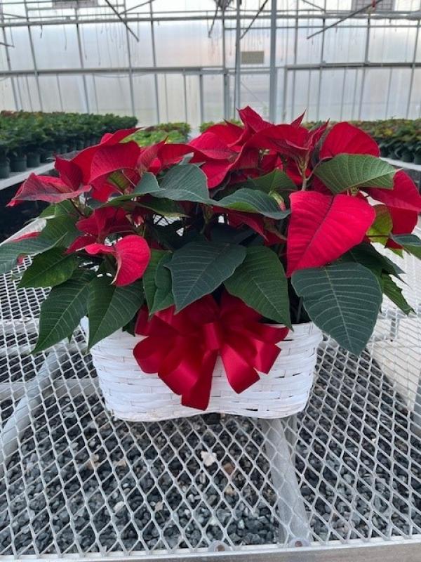 Poinsettia Double Basket/bow & Moss 6.5"