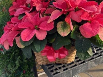 Poinsettia Hanging Basket w/ Bow